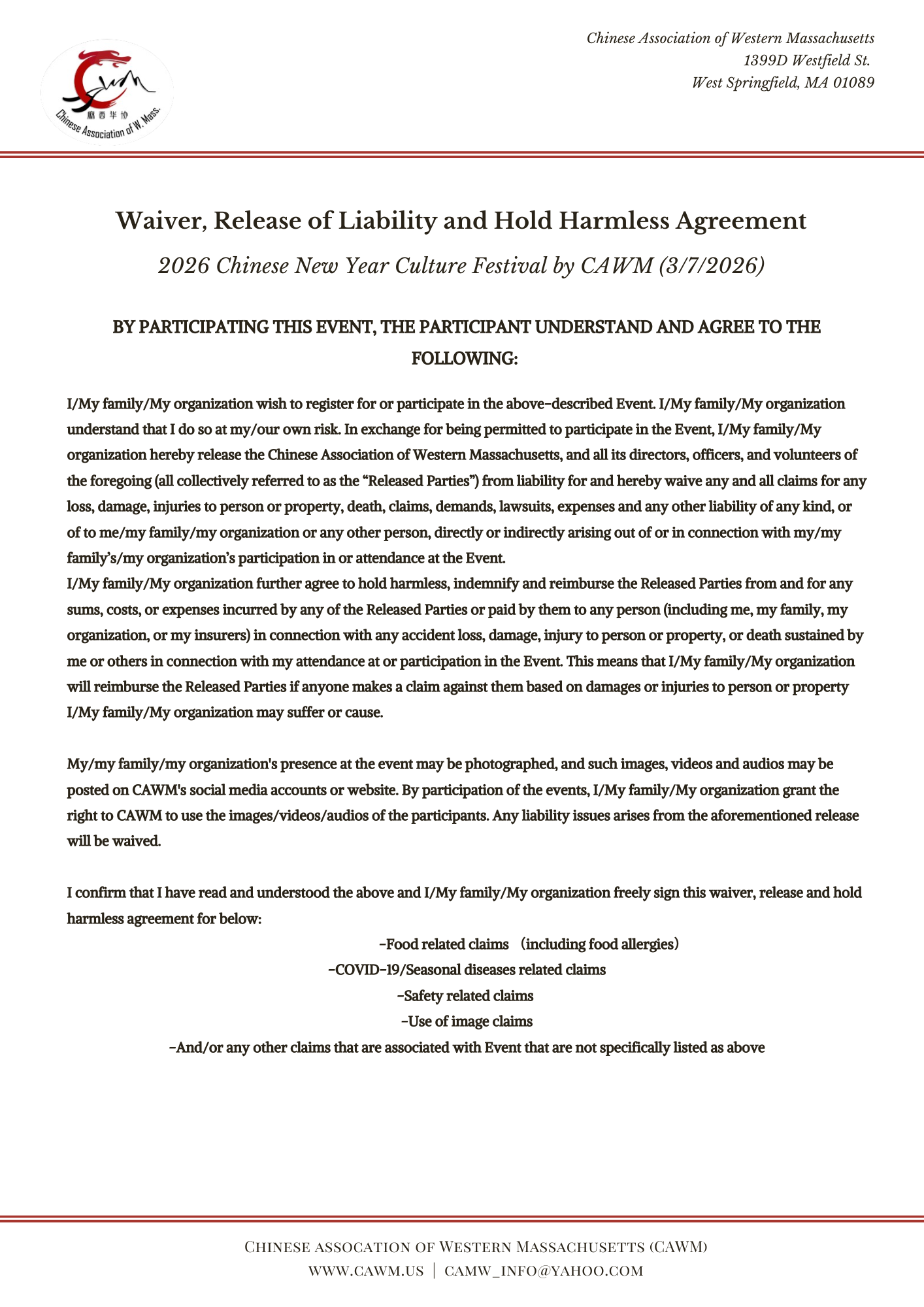 Join CAWM for an exciting, family-friendly Lunar New Year cultural experience on Saturday, March 7, 2026, at Smith Vocational High School in Northampton, MA. Enjoy an afternoon filled with hands-on cultural activities, live stage performances, local vendor showcases, and festive holiday treats and sampling stationsโa vibrant way to celebrate culture, tradition, and community together.